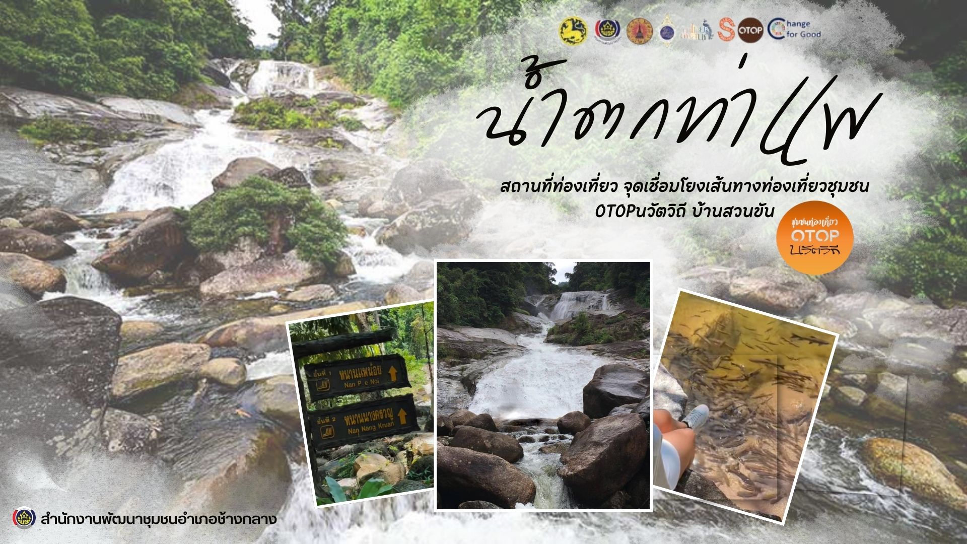 จุดเชื่อมโยงเที่ยว "น้ำตกท่าแพ" ซึ่งตั้งอยู่ หมู่ที่ 14 บ้านท่าแพ ตำบลช้างกลาง อำเภอช้างกลาง จังหวัดนครศรีธรรมราช เป็นสถานที่ท่องเที่ยวเชิงนิเวศ อยู่ในเขตอุทยานแห่งชาติเขาหลวง เป็นน้ำตกที่สวยงดงาม เหมาะแก่การเล่นน้ำ เที่ยวชมความสวยงามของน้ำตก พักผ่อน หย่อนใจ และชมวิวรอบๆ โดยจะมีเส้นทางศึกษาธรรมชาติให้ ไว้สำหรับเรียนรู้ระบบนิเวศต่างๆ รวมไปถึงความหลากหลายทางธรรมชาติ เพราะบริเวณรอบน้ำตกจะมีธรรมชาติที่สมบูรณ์สวยงามเหมาะกับการเดินป่าชมธรรมชาติ และศึกษาพันธุ์ไม้