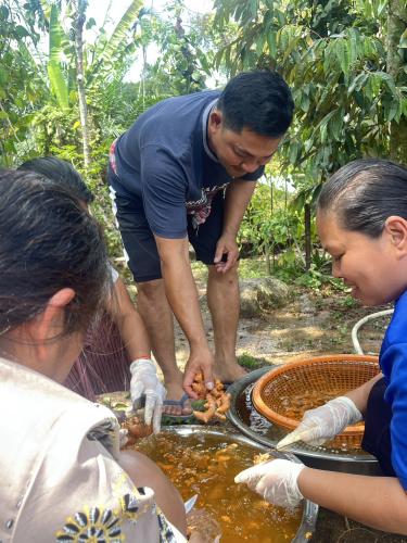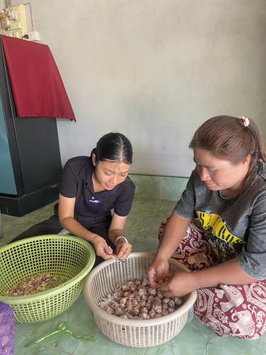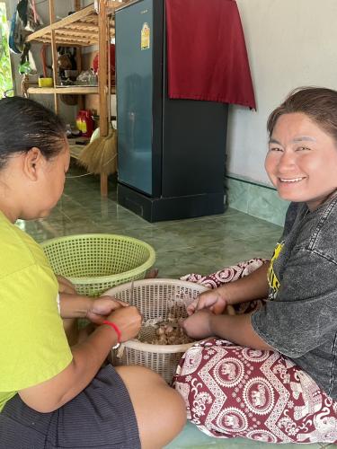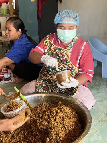 นางภัณพัท ศักดิ์หอม พร้อมด้วยนางสาวผุสดี นุ่นใฝ และนางสาวจิรฐิตา ปรีชา นักวิชาการพัฒนาชุมชนปฏิบัติการ ลงพื้นที่ติดตามการดำเนินการส่งเสริมประชาชนเป้าหมายเข้าถึงแหล่งทุน รวมกลุ่มอาชีพการทำเครื่องแกง หมู่9 บ้านจอมทอง ต.สวนขัน อ.ช้างกลาง จ.นครศรีธรรมราช